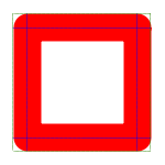 Difference between corner values on 25px thickness rectangle: Bevel, Miter and Round