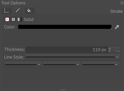 O primeiro conjunto de botões nos permite definir o preenchimento do traço: Nenhum, Cor e Gradiente; as mesmas opções existem para o preenchimento da forma. Consulte a seção “Preenchimento” a seguir para obter mais detalhes sobre como usar ambos.
